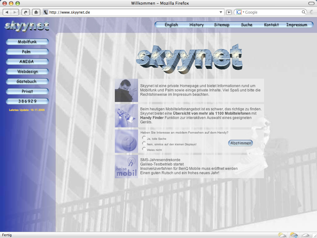 Skyynet hatte vom 24.07.1999 bis 31.12.2001 über 82.000 Visits