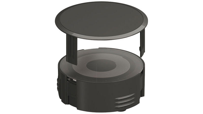 - Magnetic Cover Power Magnet (MCPM) ermöglicht die magnetische Ausrichtung durch magnetische Kopplung und damit die Verwendung von Zubehörabdeckungen während des kabellosen Aufladens über Durchführungsmagnete