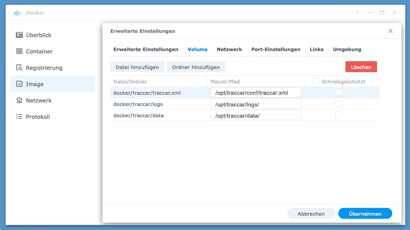 Übernehmen wird die Traccar Docker Installation abgeschlossen. Danach kann die