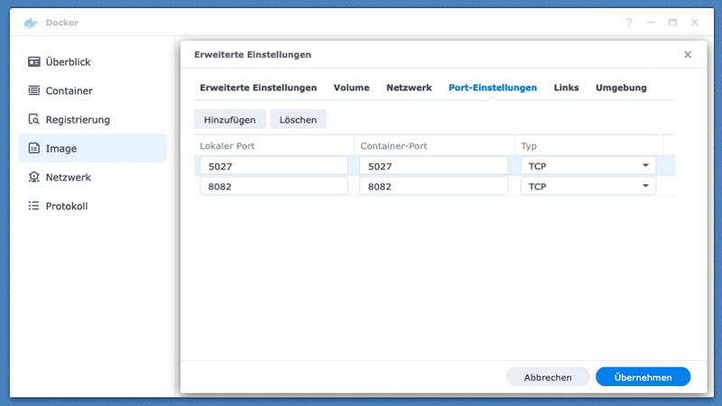 Benutzeroberfläche unter http://<synology-ip>:8082 aufgerufen werden. Dort registriert