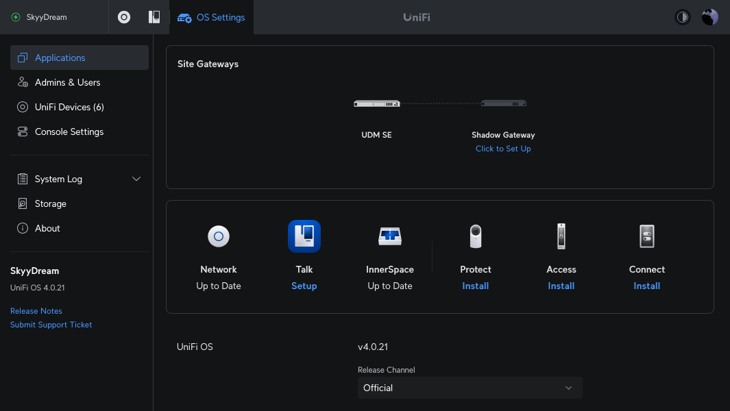 Zunächst muss man in der UDM-SE UniFi Talk installieren. Danach auf Setup klicken und als