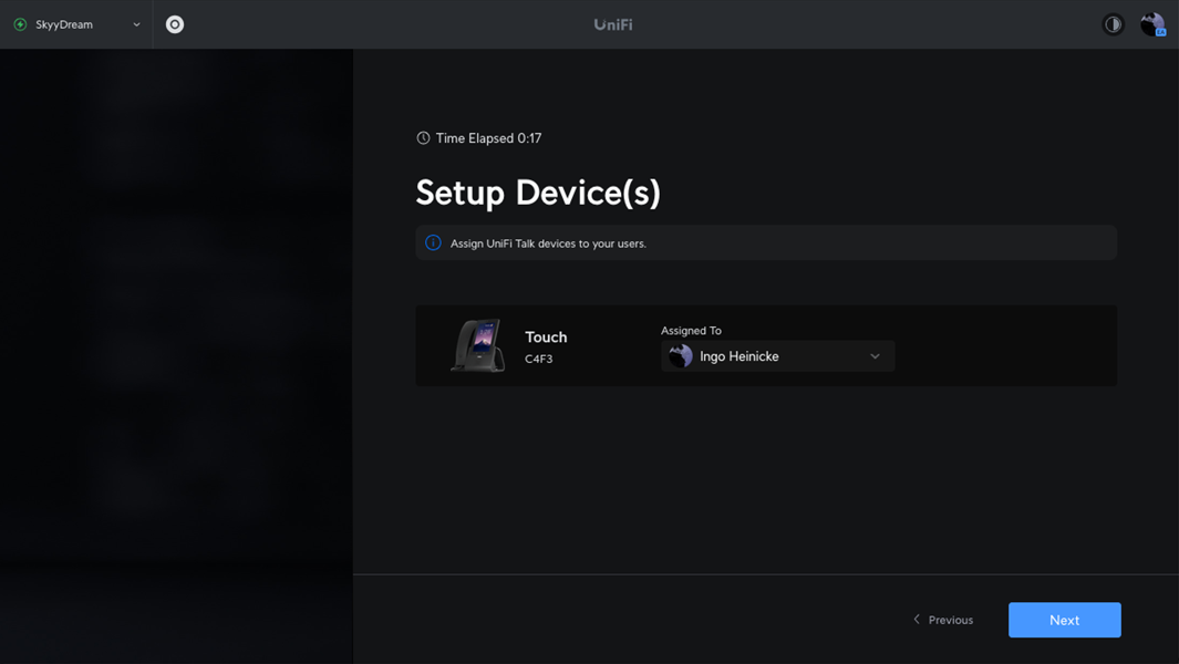 Zur Ersteinrichtung wird ein UniFi Telefon benötigt