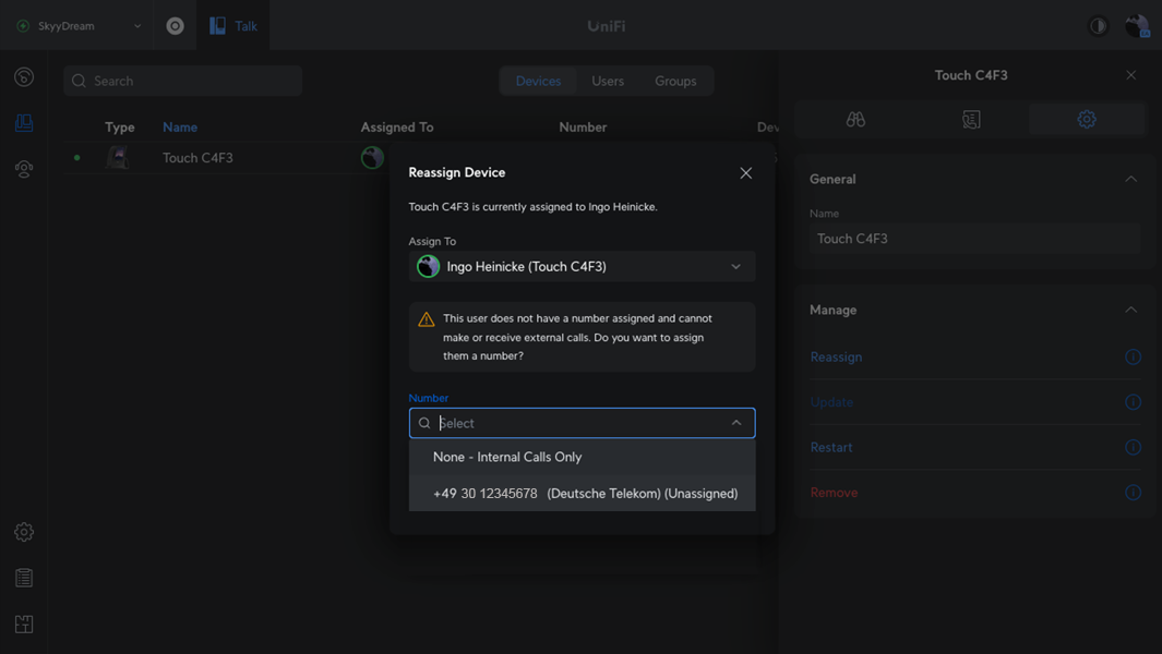 Settings Symbol und dann auf auf Reassign. Nun wählt man die Telefonnummer